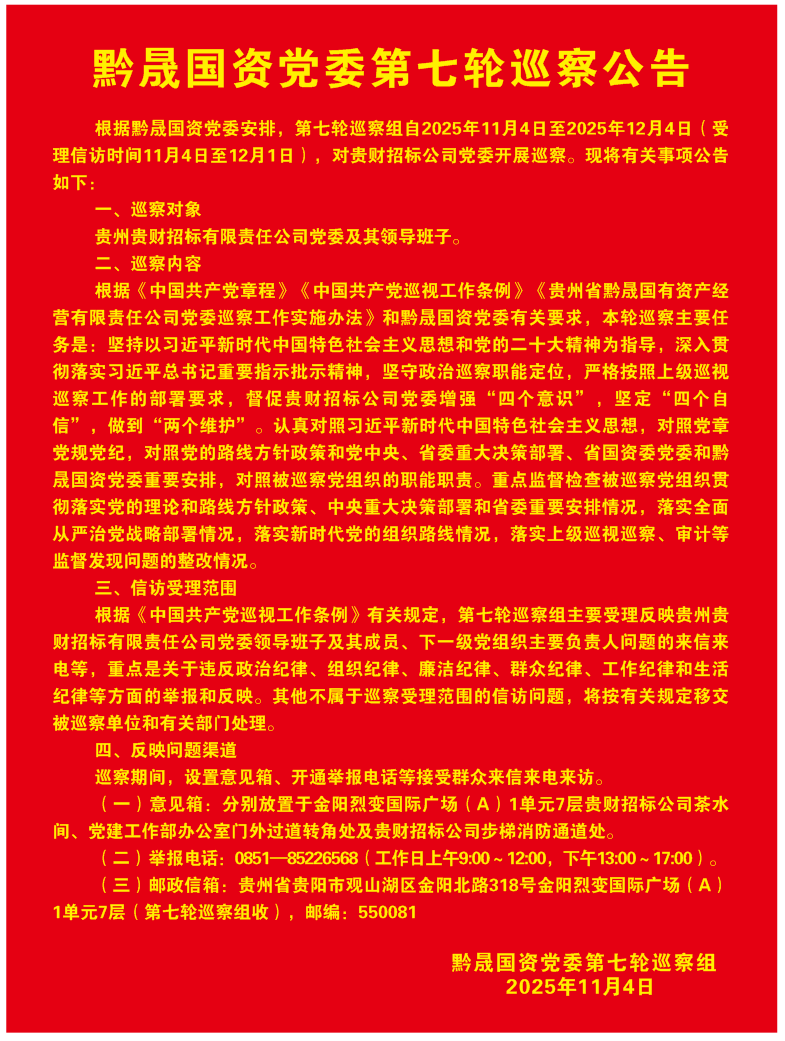 黔晟國資黨委第七輪巡察公告