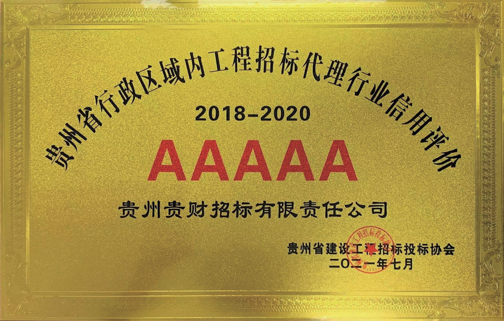 貴州省工程招標(biāo)代理AAAAA信用評(píng)價(jià)